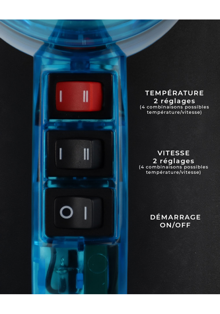 Son coloris Turquoise apporte une touche moderne et distinctive à votre espace beauté. Compact, élégant et résolument professionnel, il incarne la génération de sèche-cheveux professionnels légers et performants.
