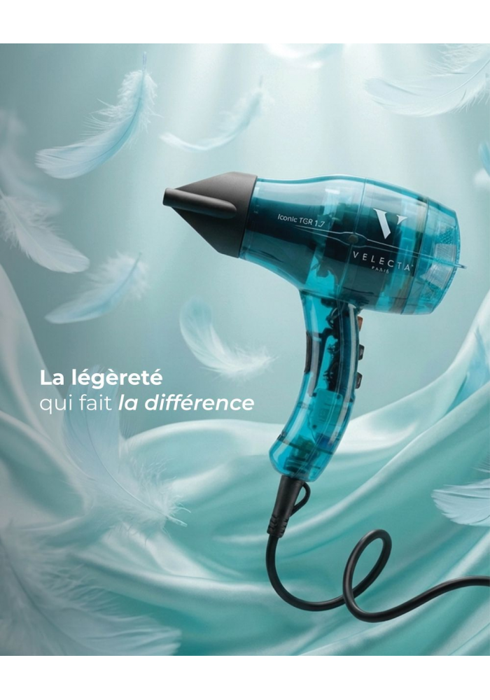 Le sèche-cheveux professionnel Iconic TGR 1.7 Turquoise incarne l’équilibre parfait entre design, performance et praticité. Sa grande force réside dans ce qui fait son identité : sa légèreté et un format de sèche-cheveux compact, idéal pour un usage confortable au quotidien.